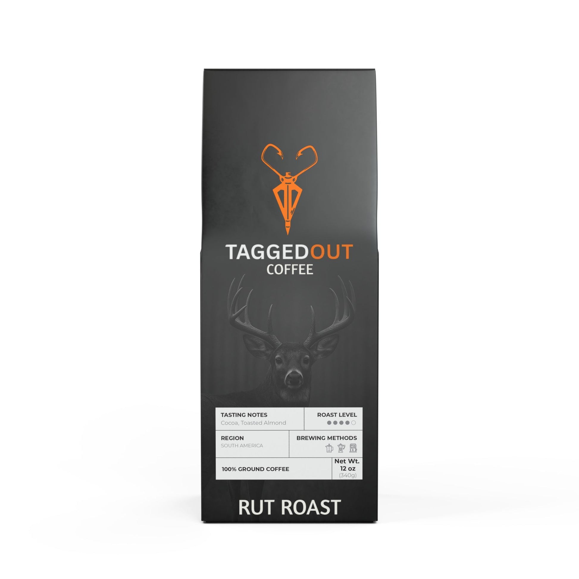 RUT ROAST delivers a rich and robust delight for your mornings. this medium-dark roast boasts flavors of cocoa and toasted nut, offering a full-bodied experience with each sip.